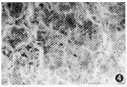 手術(shù)所見:腫物位于內(nèi)環(huán)口上方腹膜外,約10cm×9cm×8cm大小,圓形,光滑,包膜完整,質(zhì)硬,與周圍無粘連,周圍淋巴結(jié)不大。病理:鏡下見瘤組織成分單一,由圓形或多角形瘤細(xì)胞構(gòu)成,胞漿透明,核大,核仁位于中央,核膜清晰,可見核分裂(圖 4)。病理診斷:睪丸精原細(xì)胞瘤(右側(cè))。